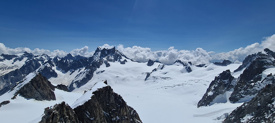 Du sommet, évidemment la vue est magnifique, nous verrons sûrement des cordées en train de parcourir la traversée de 2 Pointes Lachenal.