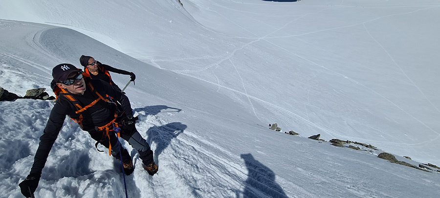 Arrivés au pied de la Pointe Lachenal, une montée assez raide nous amènera sur l'arête finale. Nous rejoindrons ensuite le sommet en grimpant sur quelques rochers.