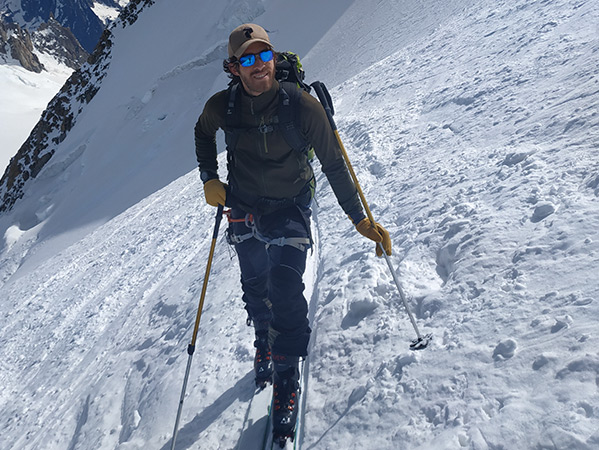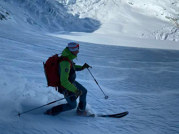 De cet endroit nous aurons accès à la magnifique descente du Glaciers des Rognons et ensuite au Glacier d'Argentière. Le panorama du bassin d'Argentière est impressionnant. Nous allons skier au pied de la célèbre Aiguille Verte qui culmine à 4121m, le plus haut sommet de 4000m entièrement en France.