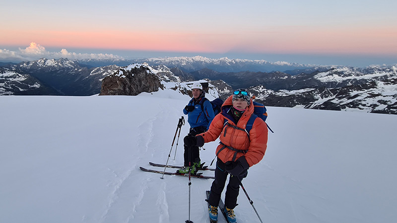 De là, montée soit à Punta Giordani 4046m ou à Pyramide Vincent 4215m.