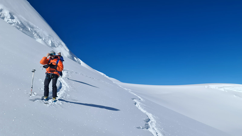 Les conversions à la montée doivent être maitrisées. Vous devez maitriser et connaitre l'utilisation de votre matériel. Savoir mettre seul ses peaux de phoque, savoir quand mettre ses cales de montée, ses couteaux, etc...