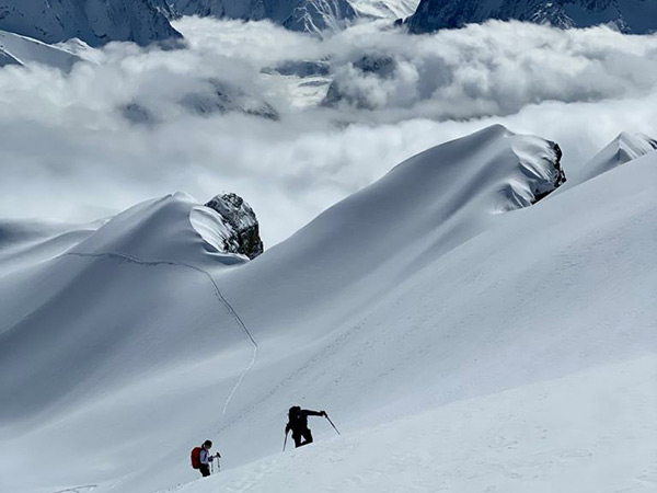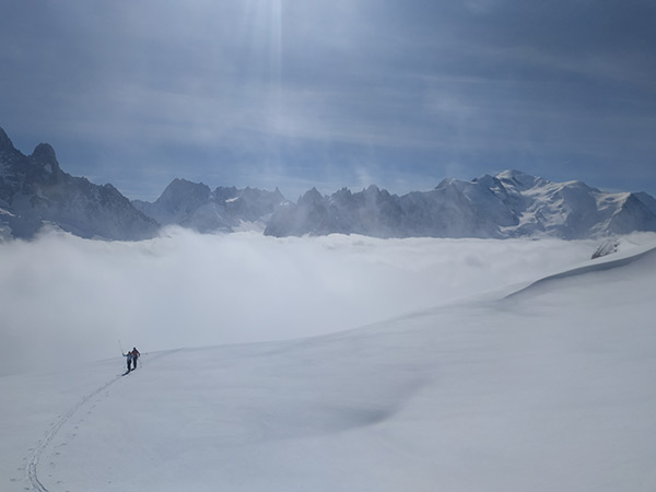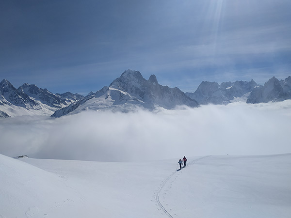 Cette ascension plein sud n'est pas très compliquée et offre une superbe descente face au Mont Blanc.