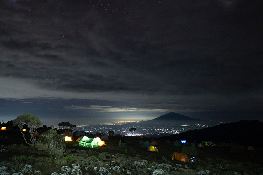 Du sommet, nous commençons notre descente en continuant tout droit vers le camp de Mweka, en nous arrêtant à Barafu pour le déjeuner. Nous arrivons au camp de Mweka dans l'après-midi et profitons de notre dernière soirée sur la montagne.