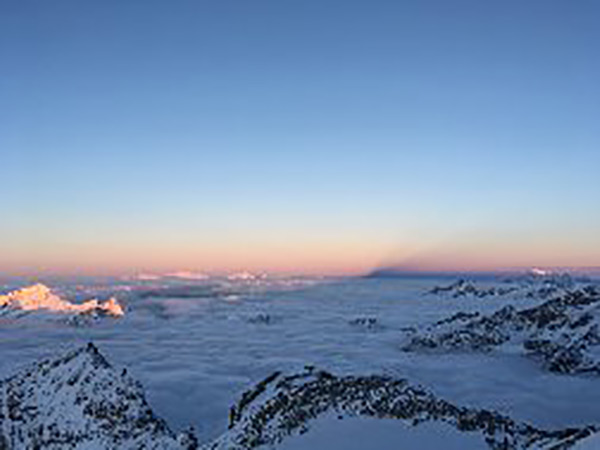 Départ à la lueur des lampes frontales directement skis au pied. Après avoir remonté le vallon Chummi-bodmen, nous prendrons pied sur l'Alphubel gletscher jusqu'au col de l'Alphubel. Une traversée quasi plate nous amènera au pied du sommet, une montée un peu raide au début puis la croix du sommet sera en vue.